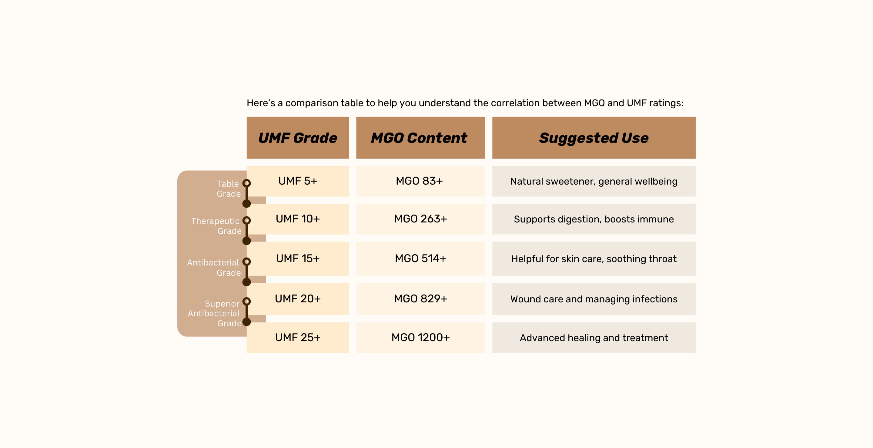 UMF is a more comprehensive grading system that also takes into account other key markers, such as Leptosperin, DHA (Dihydroxyacetone), and HMF (Hydroxymethylfurfural).